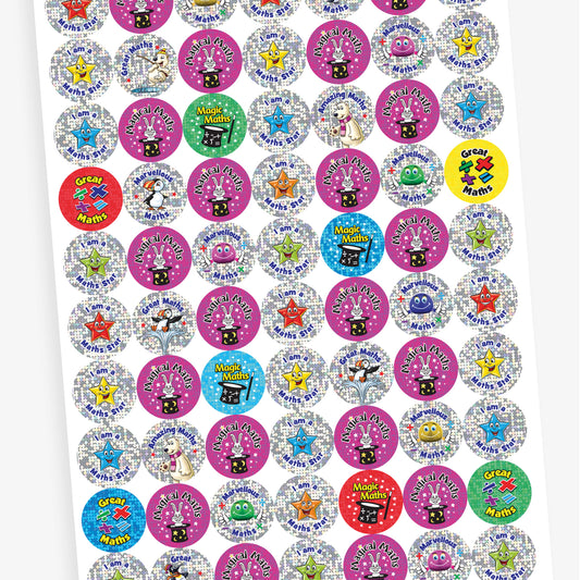 35 Personalised Holographic Maths Star Stickers - 37mm