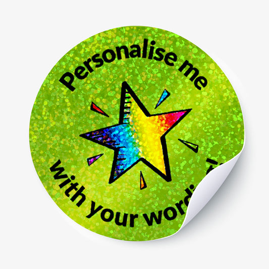 35 Personalised Holographic Rainbow Star Stickers - 37mm