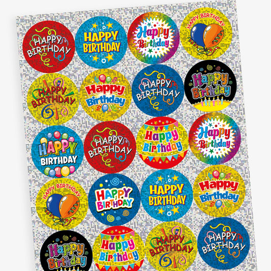 Holographic Happy Birthday Stickers - 32mm
