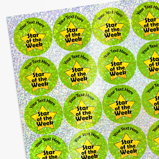 35 Personalised Holographic Star of the Week Stickers - 37mm