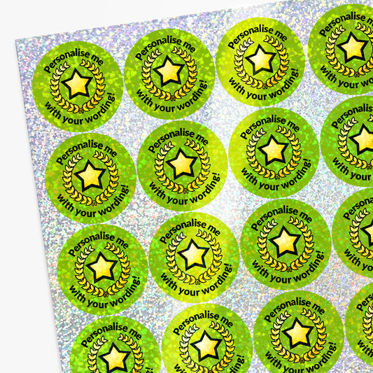 35 Personalised Holographic Laurel Wreath Stickers - 37mm