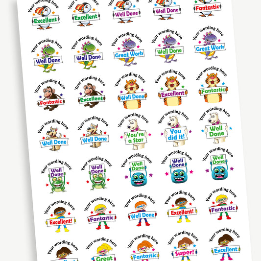 35 Personalised Bubblegum Scented Character Stickers - 37mm