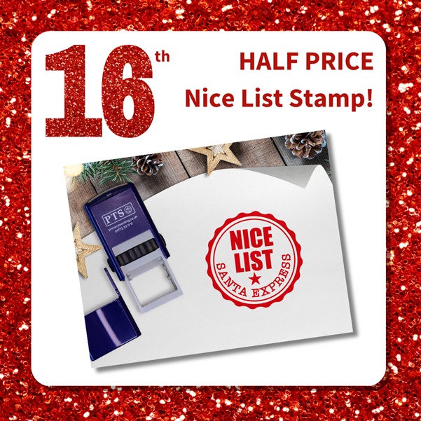 Claim 50% off a ‘Nice List’ stamper (product code ST259), perfect for making kids smile!