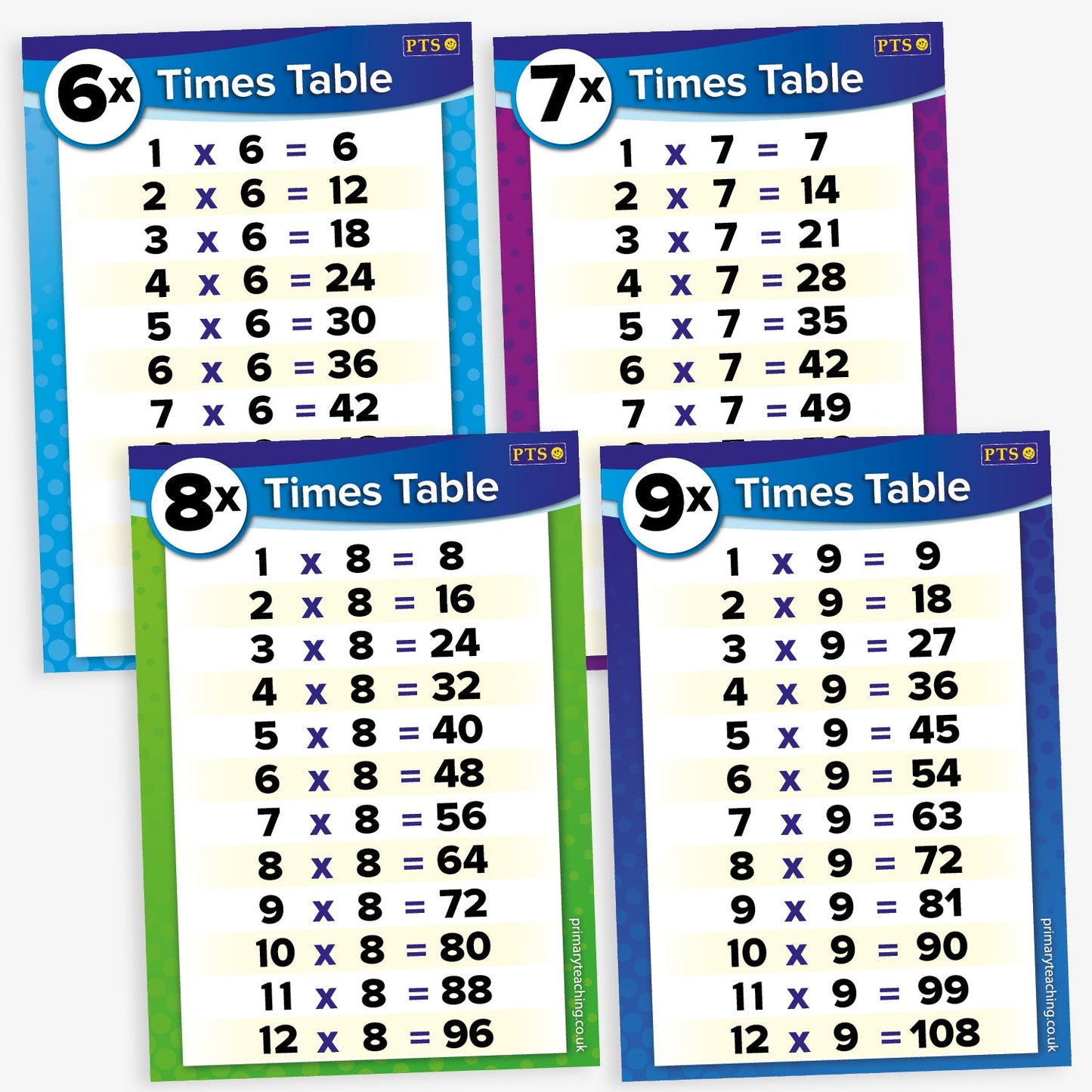 Each poster is A4 in size, made of thick card and focusses on a different multiplication table.