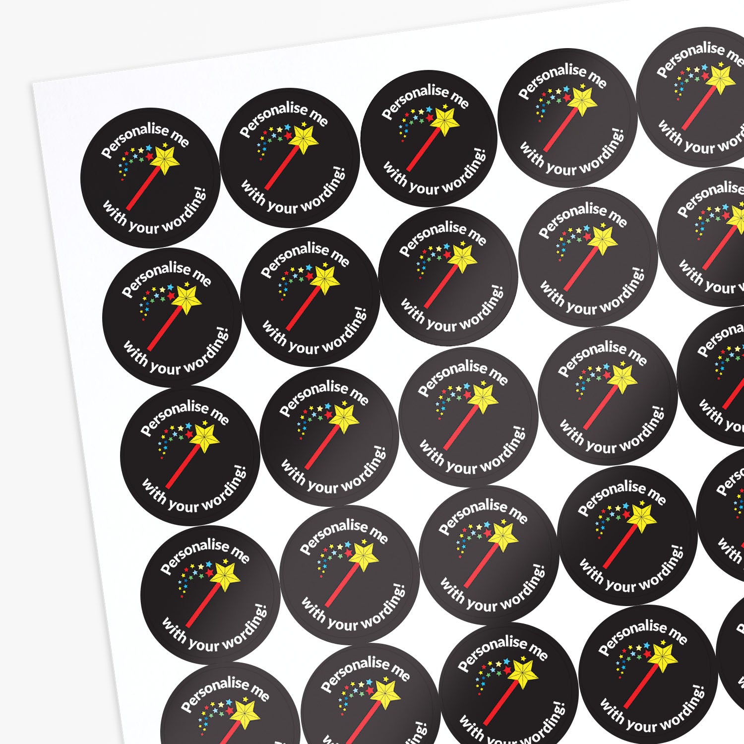 PAN39 - Sheet of 25mm Personalised Wand Stickers.