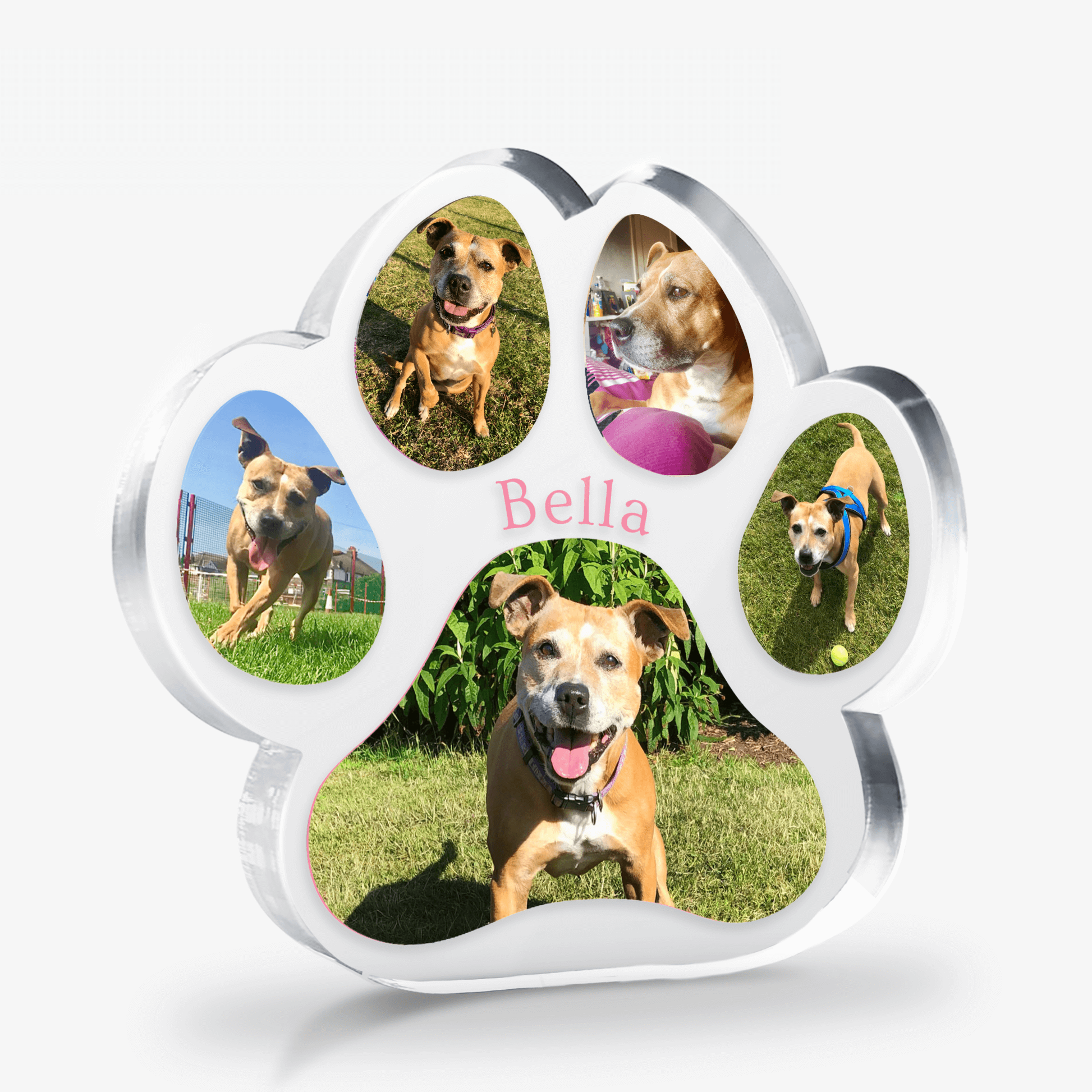Create a truly special keepsake with this personalised acrylic paw-shaped block. Upload up to 5 photos and choose to add your own wording for a thoughtful touch.